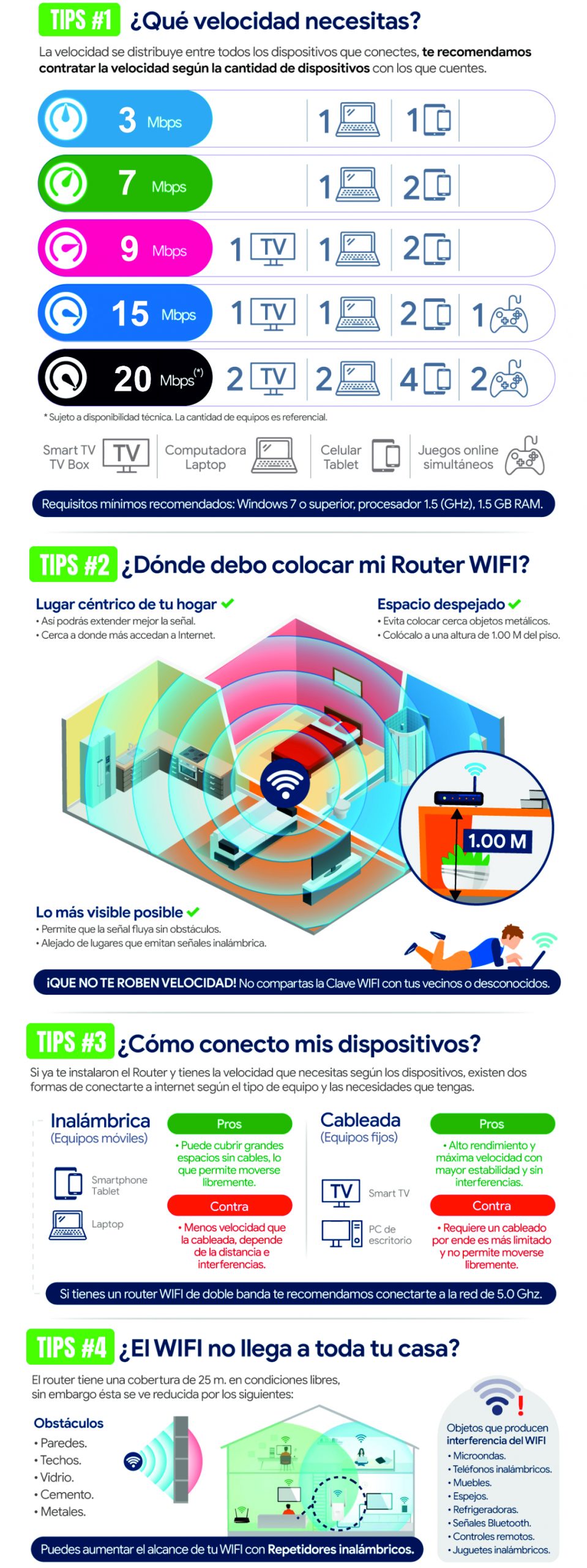 Más de 20 equipos conectados sin afectar la velocidad del plan de Internet contratado.